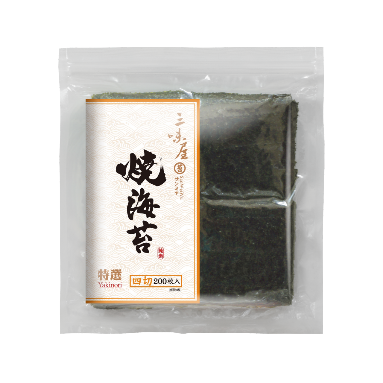 三味屋|全形燒海苔「四切」200枚 (無調味)